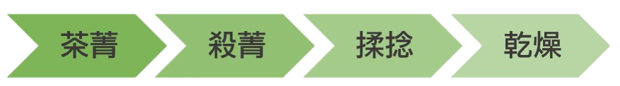 | 1.鮮採嫩葉直接蒸菁,邊揉捻邊乾燥成型。 2.為日本最常飲用的綠茶。 3.主要以蒸菁時間長短,區分普通煎茶與深蒸煎茶。 |